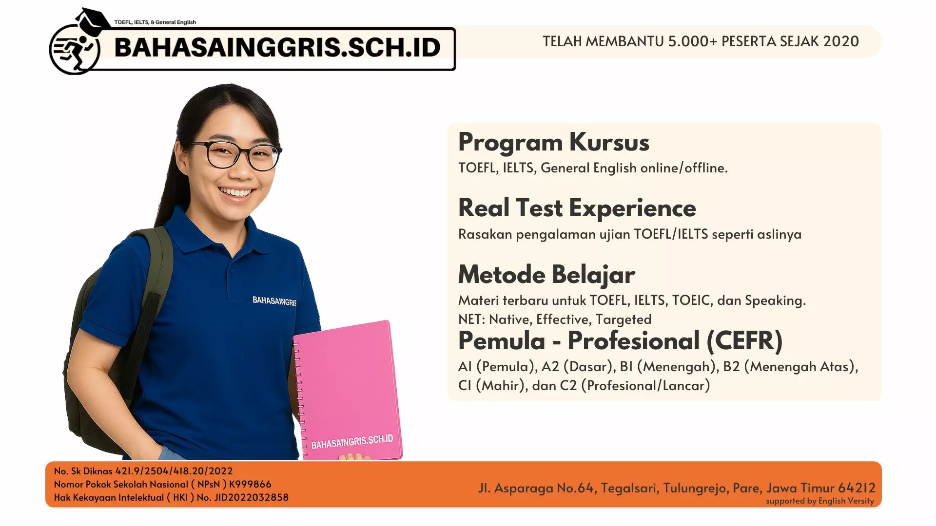 Lembaga Resmi Kursus & Tes Bahasa Inggris TOEFL – IELTS | BahasaInggris.sch.id