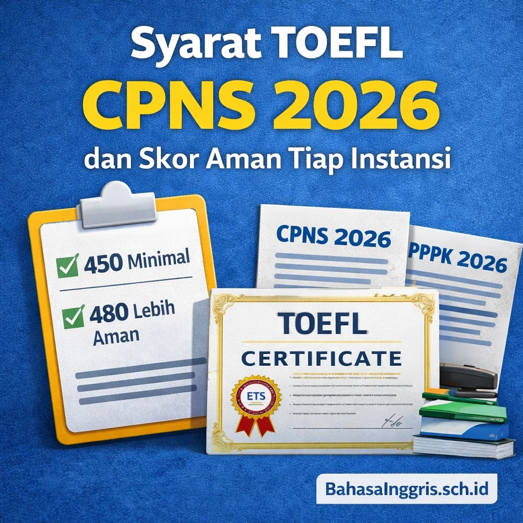 Syarat TOEFL CPNS 2026 adalah ketentuan skor dan jenis sertifikat bahasa Inggris yang biasanya mengikuti pengumuman tiap instansi. Untuk pelamar CPNS dan PPPK, target aman umumnya mulai 450–480 pada instansi yang mensyaratkannya. Manfaatnya, Anda bisa menyiapkan tes resmi lebih awal dan menghindari gagal administrasi.